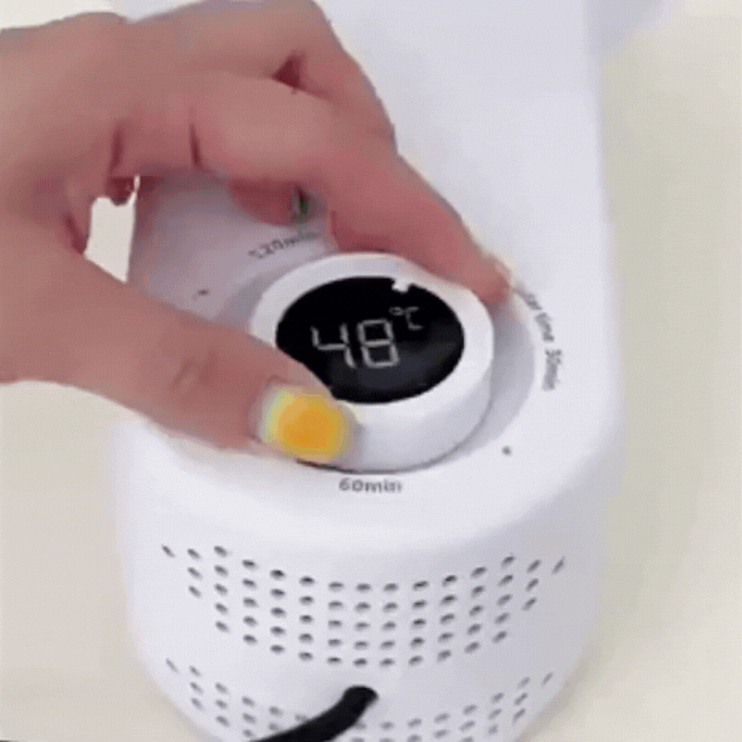 Csatlakoztasd a készüléket a hálózathoz, majd válaszd ki a kívánt szárítási időt a 30 / 60 / 90 / 120 perces időzítő segítségével.
